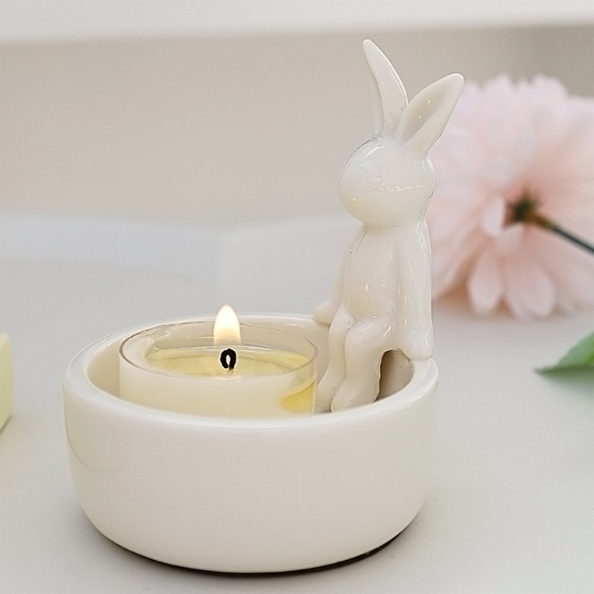This Bunny Ceramic Candle Holder brings a soft, whimsical touch to any space. Designed to hold tealight or flameless candles, its charming bunny shape makes it perfect for cozy corners, nurseries, or as a thoughtful gift.