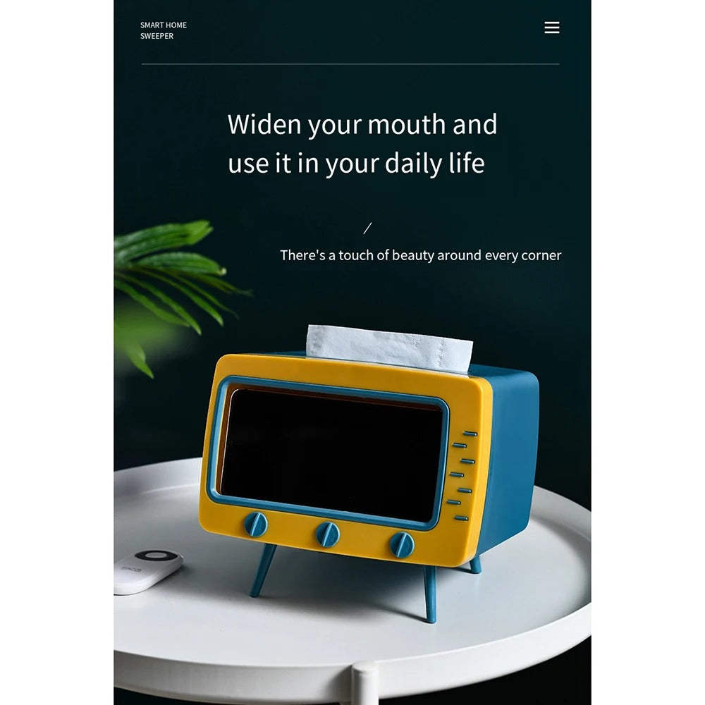 Add a playful twist to your tissue storage with this retro TV-style tissue organizer! Designed to resemble a classic television set, it doubles as a phone holder so you can binge your favorite shows while grabbing tissues in style. Perfect for living rooms, bathrooms, desks, or bedside tables.