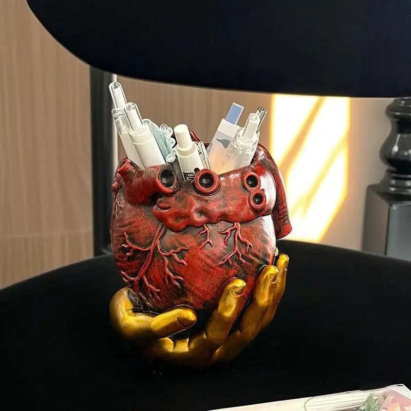Make a statement on your desk with this Creative Anatomical Heart Pen Holder, a striking blend of art and function. Designed in the form of a realistic heart held by sculpted hands, this special-shaped storage piece turns everyday desk organization into a visual centerpiece.