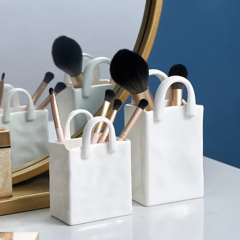 - Unique handbag-inspired ceramic design