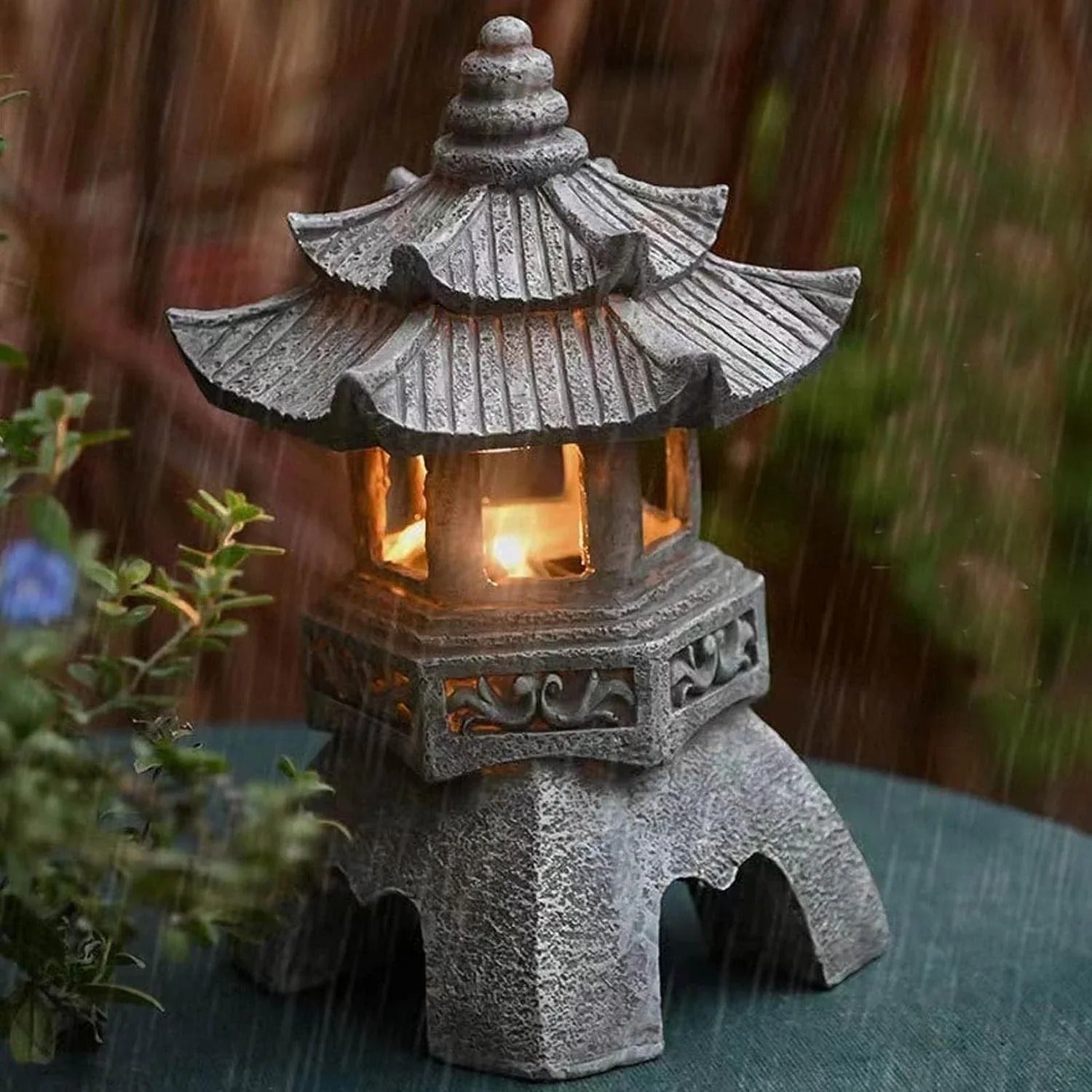Solar LED Pagoda Lantern – Japanese Garden Light Statue
