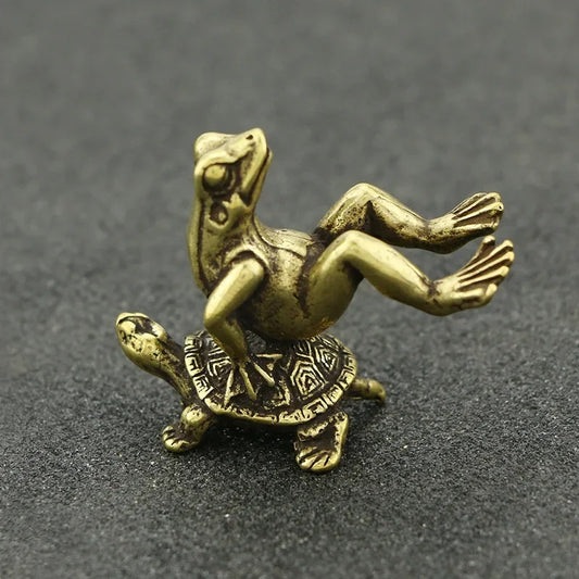 Antique Brass Tortoise and Frog Miniature